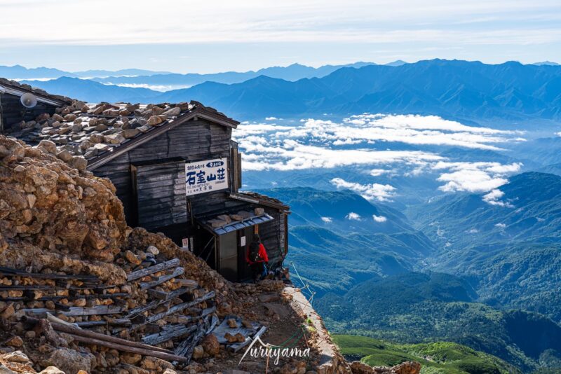 一通り景色を満喫したのち、御朱印をいただいて下山を始めました。昨日には分からなかった、石室山荘のロケーションの良さにはびっくり。