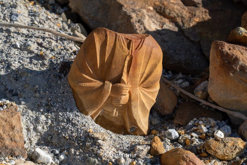 的なことを山の絵本で書いていたっけなどと考えつつ、無事に剣ヶ峰に登頂しました。達成感はもちろんあるけれども、慰霊碑や頭がなく埋まりかけた石像などをみると、数年前に起きた噴火が想起されてなんとも神妙な気持ちに。