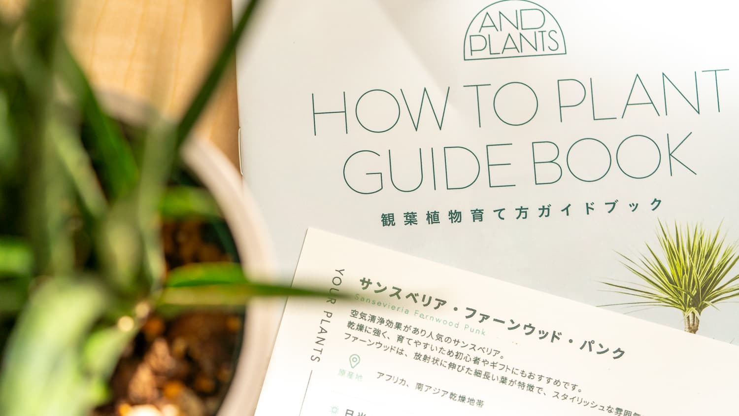 今回注文した植物のほか、サンスベリア・ファーンウッド・パンクの管理方法、そのほかアンドプランツで取り扱っている植物のガイドブックなどが同梱されていました。